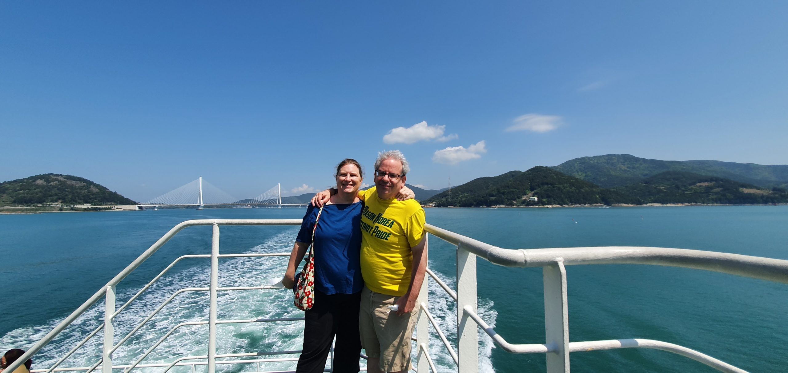 Since we arrived at the right port in plenty of time, we were able to get some coffee before leaving. We struck up a conversation with a lovely family because I overhead their little boy asking about Teresa and me speaking English. Really, I mostly just heard the word 영어로 (yeongawro), which means “in English,” and surmised the rest. My Korean is still not good enough to follow most whole conversations.
